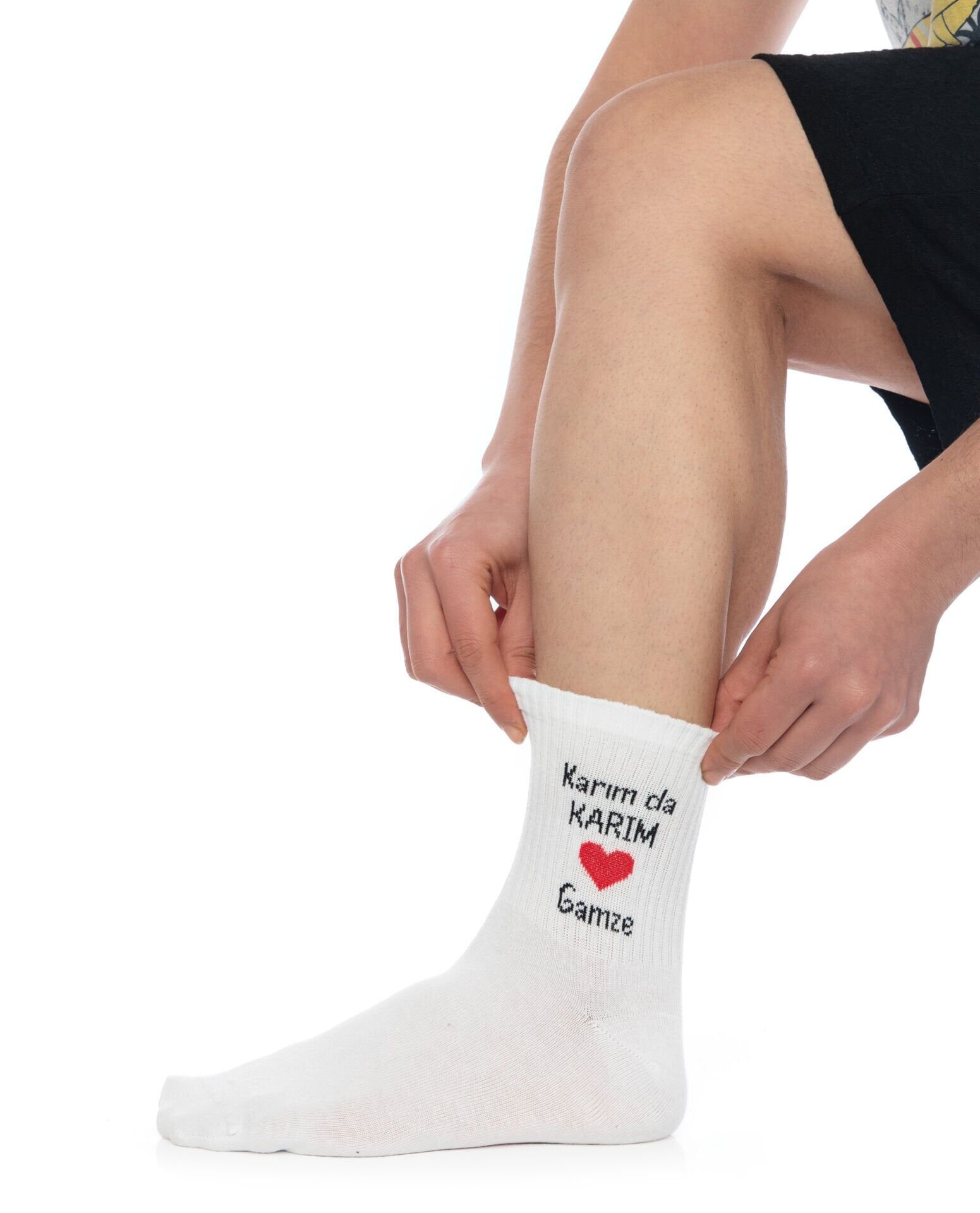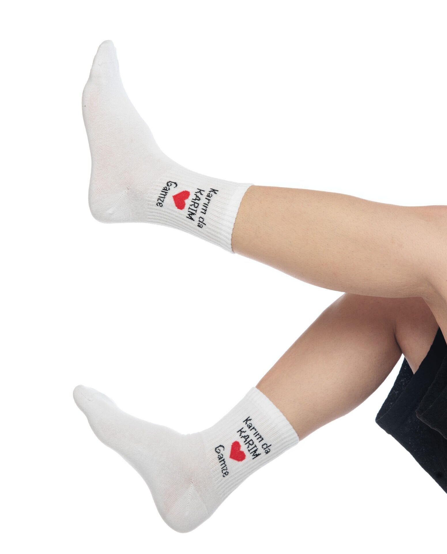 Çorap üzerindeki isim, logo ve harfler, örgü tekniğinde çorap ile örülmektedir.